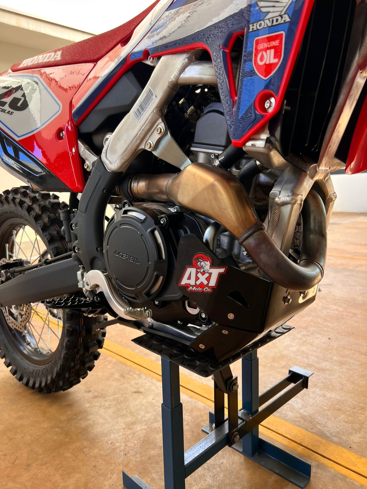 Nossos protetores de motor de plástico são fabricados em polietileno de alta densidade (PEAD) com espessura de 6mm ou 8mm para proteger a parte inferior do quadro e motor, tampas laterais do motor e bomba d'água contra impactos direto e projeções de pedras, galhos ou qualquer coisa que possa danificar essas partes. Esse modelo possuí proteção para o link do amortecedor embutido em dupla camada de plástico.